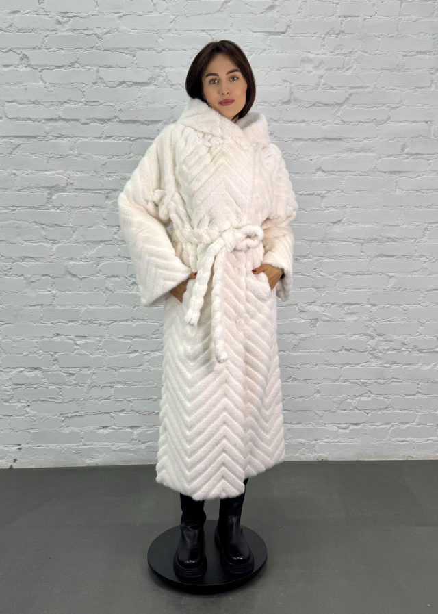 Eco-fur coat N165V. Color: Macadamia print