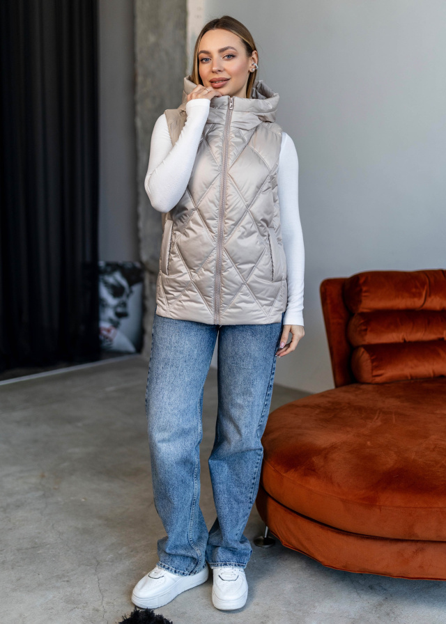 Жилетка имеет элегантный стеганый узор, который придает изделию уникальность и стиль. Комбинированная застежка на кнопках и молнии обеспечивает надежную защиту и легкость использования. Легкая и теплая, она обеспечит комфорт в прохладную погоду без лишнего объема.
