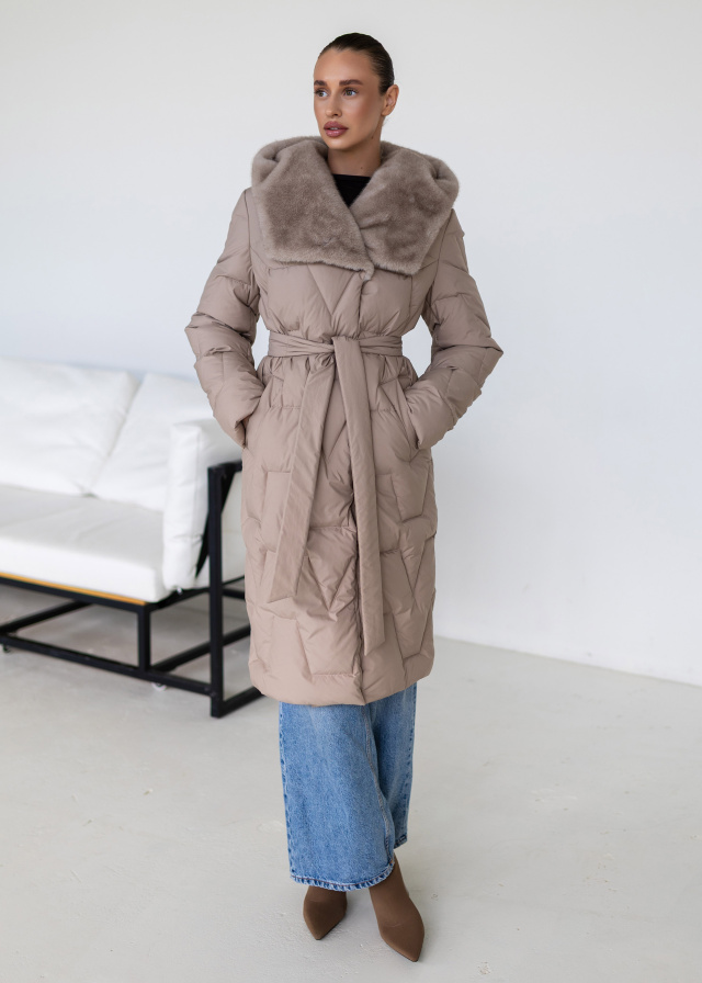 Ця куртка створена для тих, хто цінує не лише тепло, а й бездоганний стиль. Вона поєднує в собі елегантність та функціональність, дозволяючи вам виглядати розкішно навіть у найхолоднішу погоду. Виготовлена з якісних матеріалів, вона забезпечить вам максимальний комфорт та тепло. Куртка має елегантний силует, який вигідно підкреслює фігуру, а стьобаний візерунок додає виробу унікальності.