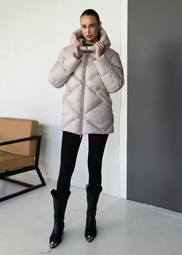 Ця куртка створена для тих, хто цінує не лише тепло, а й бездоганний стиль. Вона поєднує в собі елегантність та функціональність, дозволяючи вам виглядати розкішно навіть у найхолоднішу погоду. Куртка має елегантний силует, який вигідно підкреслює фігуру, а стьобаний візерунок додає виробу унікальності. Практичний капюшон: Захистить вас від вітру та холоду.