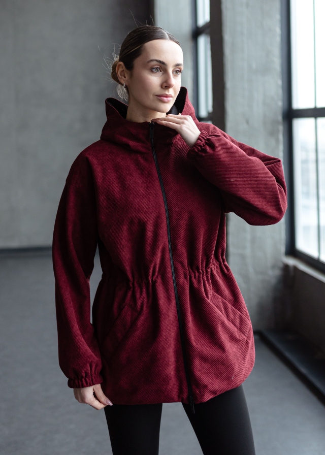 Двостороння ветровка з капюшоном N117V. Колір: Bordo