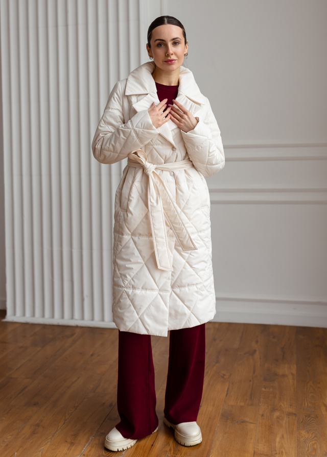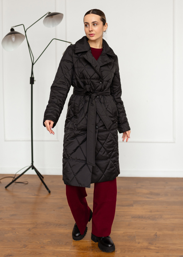 Стьобаний плащ з утеплювачем та виразним англійським коміром стане вашим улюбленим верхнім одягом цього сезону. Його елегантний фасон поєднує тепло, комфорт і стиль, а пояс дозволяє створити ідеальний силует.