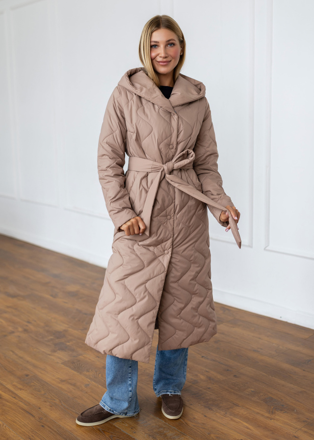Елегантний та стильний плащ - ваш ідеальний вибір для будь-якої погоди! Цей плащ - це не просто верхній одяг, а справжній витвір мистецтва, що поєднує в собі елегантність та практичність. Ідеальний для тих, хто цінує комфорт і стиль. Прямий крій з поясом на талії, який вигідно підкреслює фігуру. Плащ має стьобаний візерунок, який надає виробу оригінальності, практичний капюшон, потайна застібка та пояс дозволять вам швидко та легко одягати та знімати плащ. Не пропустіть можливість придбати цей чудовий плащ! Він стане вашою улюбленою річчю в гардеробі.