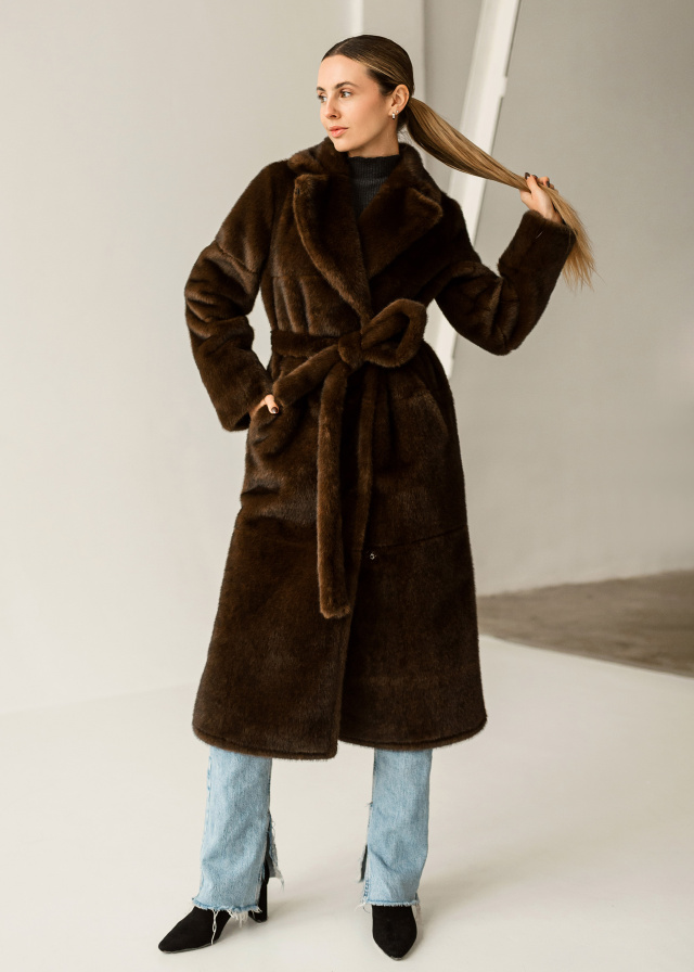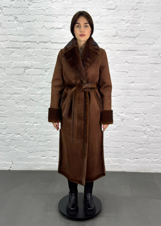 Ця елегантна дублянка є ідеальною знахідкою для тих, хто прагне поєднати бездоганний стиль і комфорт. Вона створена, щоб ви почувалися неперевершено і захищено від холоду. Дублянка має класичний крій та стильний пояс, що витончено підкреслює фігуру, створюючи жіночний силует. Англійський комір додає образу елегантності та витонченості, роблячи його більш завершеним. Виготовлена з якісних матеріалів, вона забезпечить вам максимальне тепло та затишок навіть у найхолоднішу погоду.